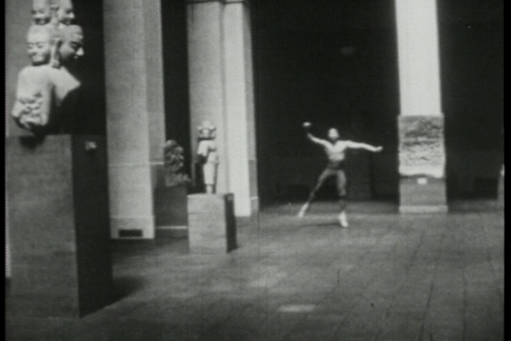 Поскольку я обладала лишь непрофессиональными знаниями в области танца как такового, в качестве единомышленника для такого эксперимента мне требовался профессиональный танцор высокого уровня подготовки, который был бы готов отказаться от театральной традиции в пользу потенциала кинематографической хореографии. Мне повезло найти такого единомышленника — им стал Талли Битти. Вместе мы сняли короткий, но очень насыщенный фильм: «Хореографический этюд для камеры». Кадры, приведенные здесь в качестве иллюстраций, сняты Хеллой Хейман во время съемок самого фильма и являются попыткой передать его действие и качество с помощью различных фотоустройств.